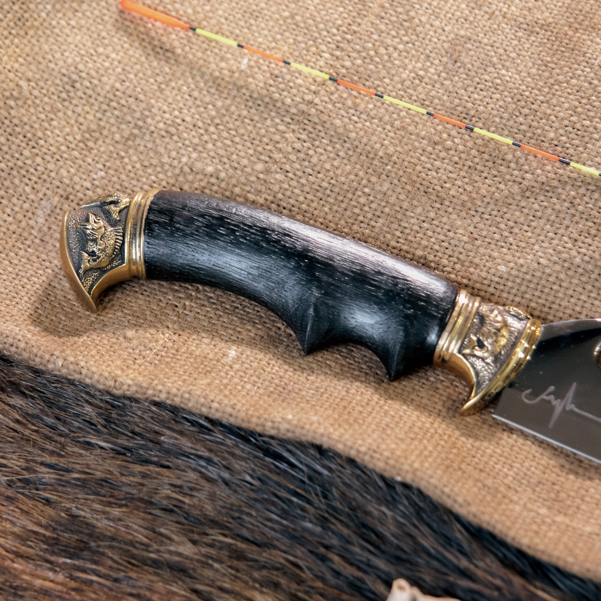 The pommel, depicting a fishing theme, and the garde with an intricate pattern are made in the technique of artistic bronze casting.