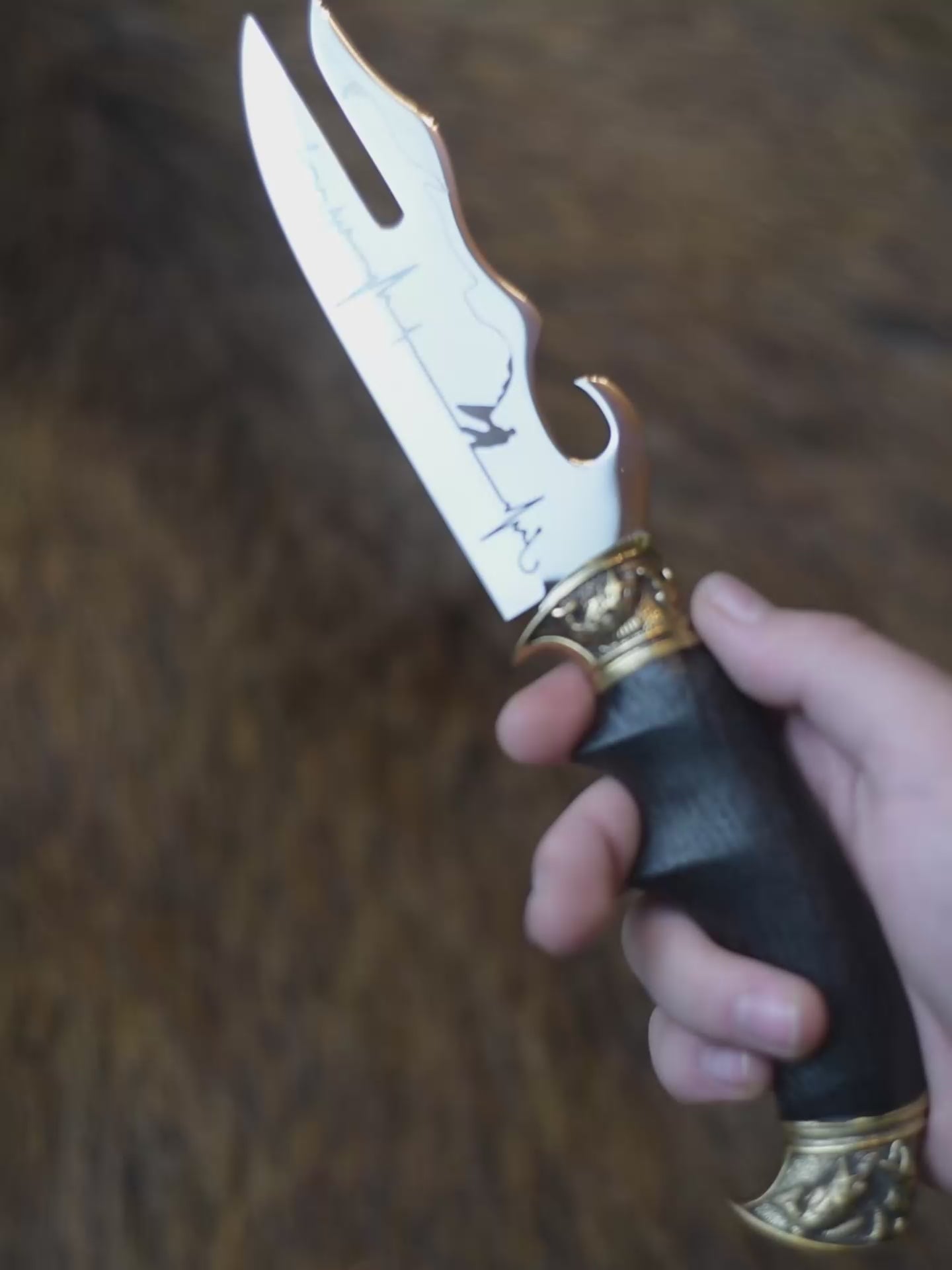 Handmade utility 3-in-1 fishing Knife "3 in 1Fisher" with decorative engraving was crafted with mastery and love by our workshop "Monterro". The blade design includes three functions: a fully working knife blade, a bottle opener, and a special cutout for removing meat from skewers. This hunting knife is perfectly suited for outdoor camping, bbq, cooking, and will become your trusty go-to companion in all adventures.