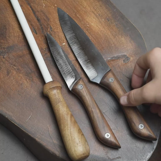 • Add a personal touch to your knives with our custom engraving service, making it one-of-a-kind. You can also add a leather cases for your knives.