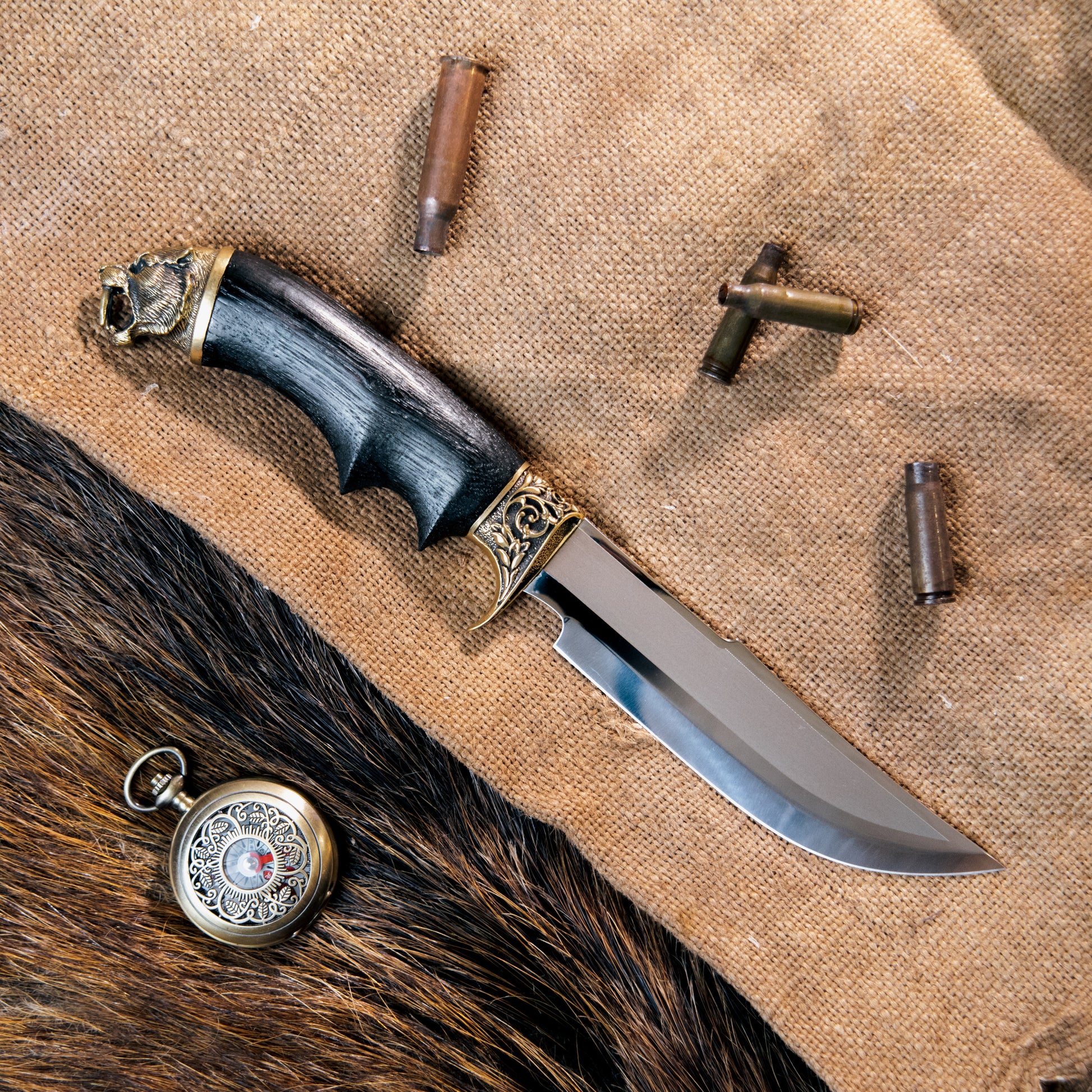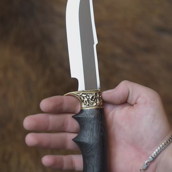 Handmade Bushcraft Knife "Predator" with strict, deep engraving on the blade was crafted with mastery and love by our workshop "Monterro". This hunting knife is perfectly suited for outdoor camping, cooking, and will become your trusty go-to companion in all adventures.