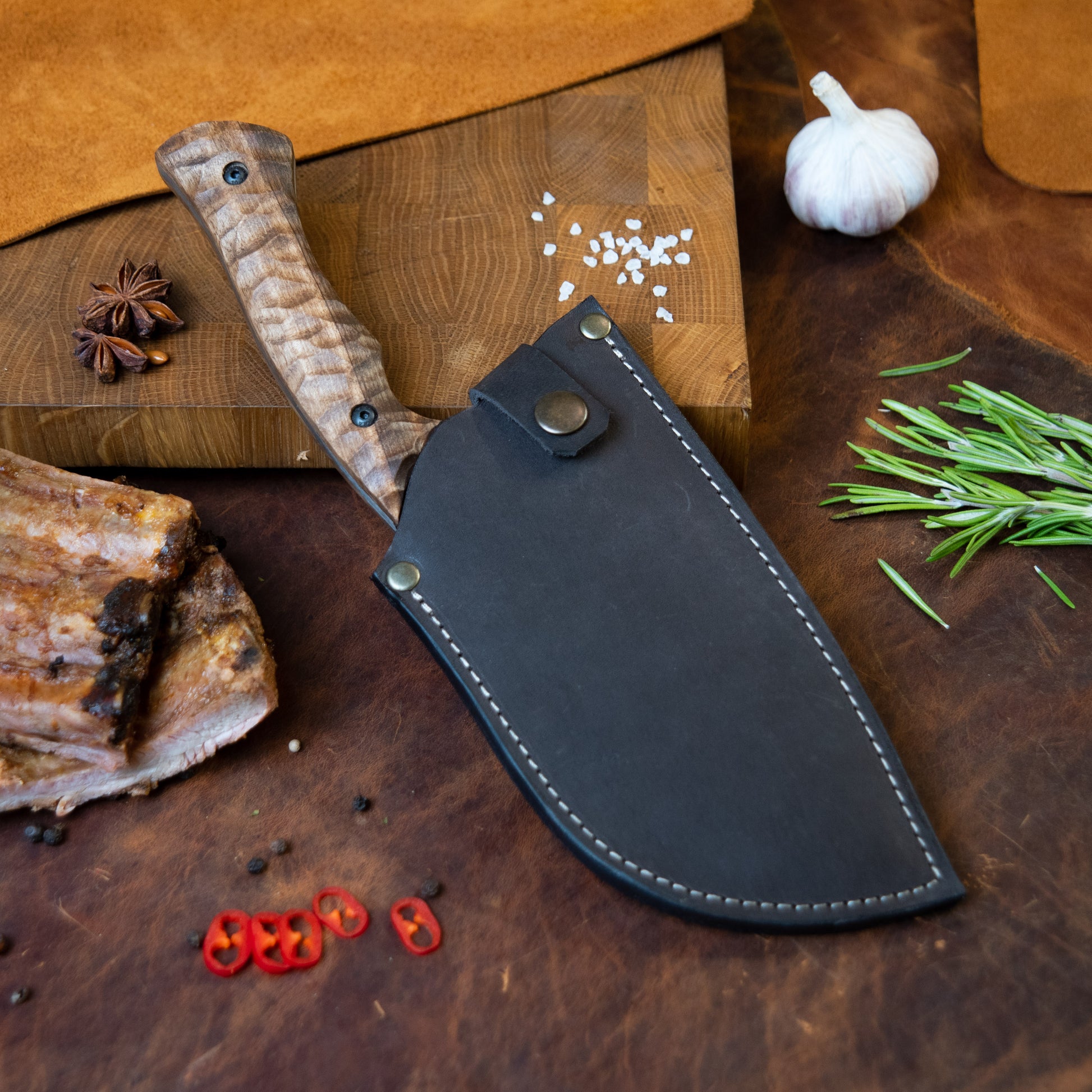 Crafted to excel as both a kitchen hatchet and a knife, this model effortlessly tackles bones with the precision of a hatchet and slices through meat and vegetables with the finesse of a knife.