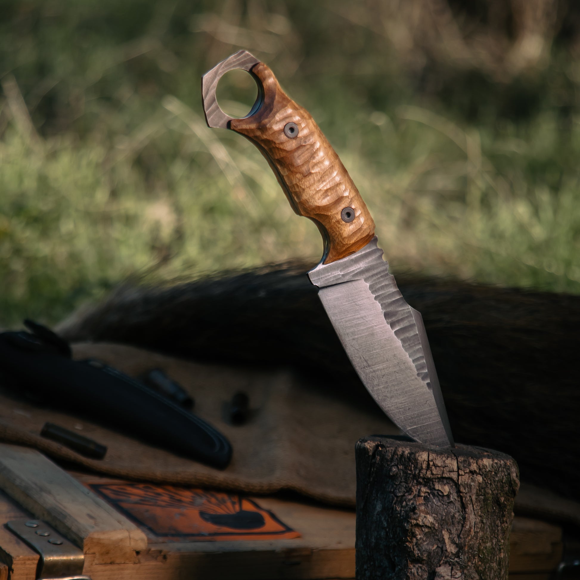 Bushcraft knife handmade "Skinner L" with stone texture is made with skill and love by our workshop "Monterro". This hunting knife is perfect for carcass cutting, hiking, cooking and will be your faithful companion in any adventure.