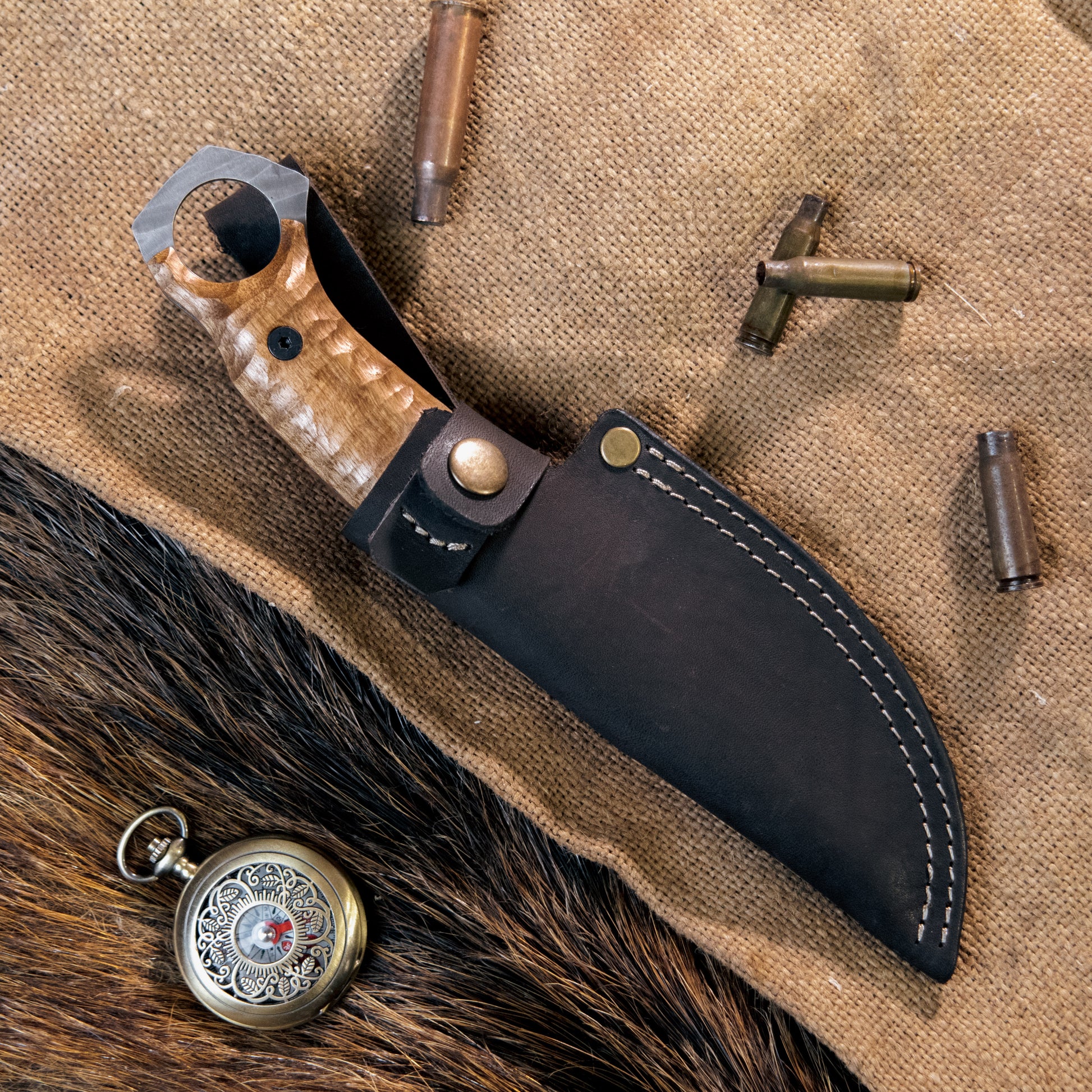 • Add a personal touch to your knife with our custom engraving service, making it one-of-a-kind. You can also add a leather case for your knife.