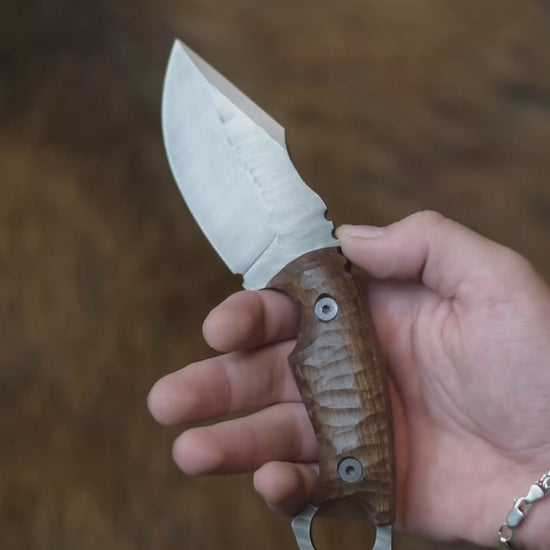 "Skinner S" – Handmade Author’s Gift Knife Bushcraft knife handmade "Skinner L" with stone texture is made with skill and love by our workshop "Monterro". This hunting knife is perfect for carcass cutting, hiking, cooking and will be your faithful companion in any adventure. Perfect for both personal use and as a gift. Whether he's a professional hunter, hiker or just your favorite dad, this hunting knife will be by his side every step of the way. Cook like a pro wherever you are.  O T H E R ∙ I N F O R M A T I O N • Add a personal touch to your knife with our custom engraving service, making it one-of-a-kind. You can also add…